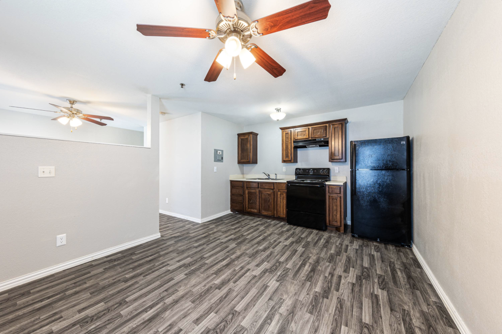 Ground-floor studios, one-bedroom, two-bedroom, and 2-bed, 1.5-bath layouts available